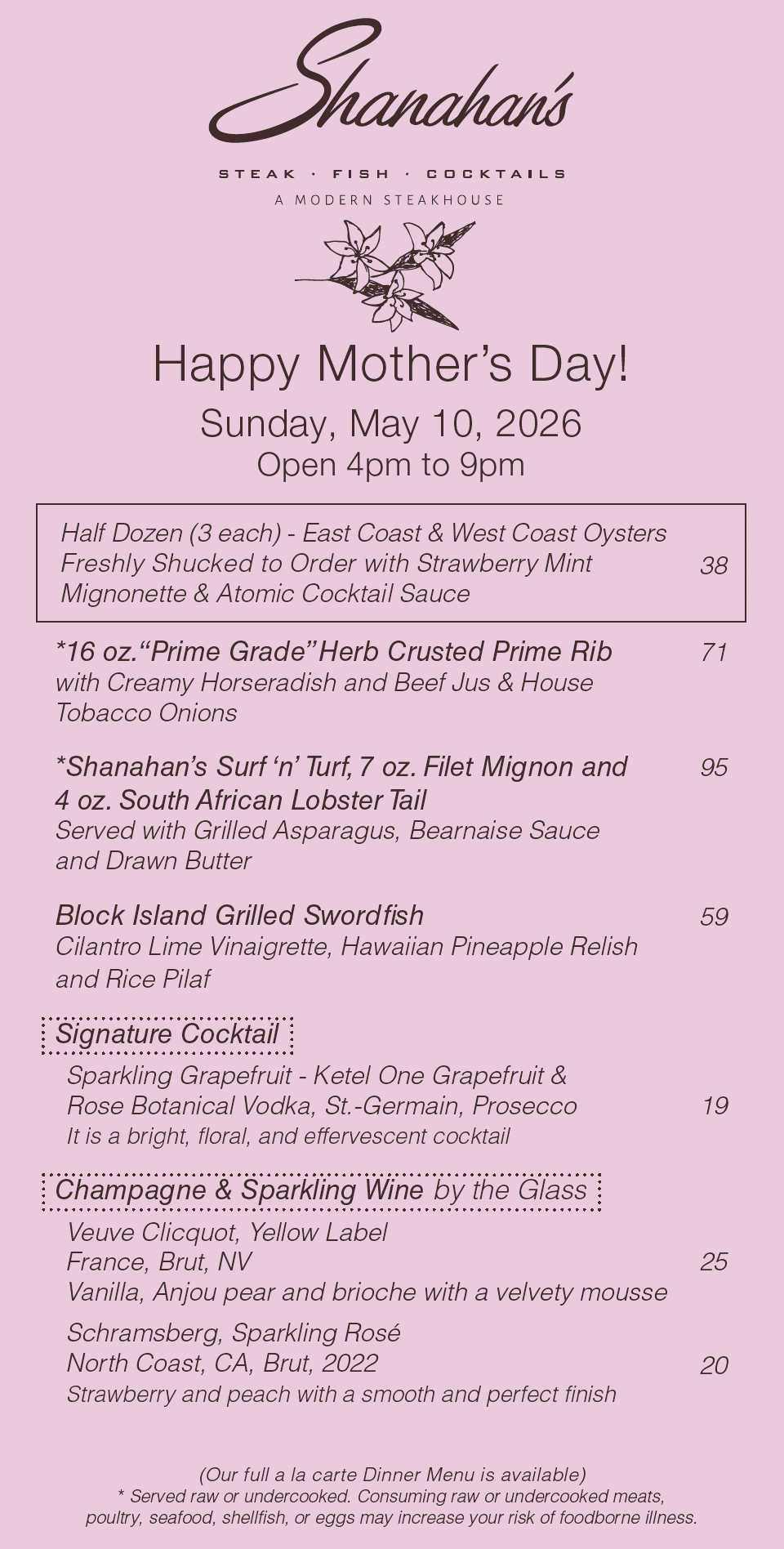 Shanahan’s gift cards are perfect for holiday gifts, graduations, birthdays, anniversaries, business rewards, and everything in between. Our wide selection of aged USDA prime steaks, seafood flown in daily, and award-winning wines from around the world are sure to make any occasion unforgettable.